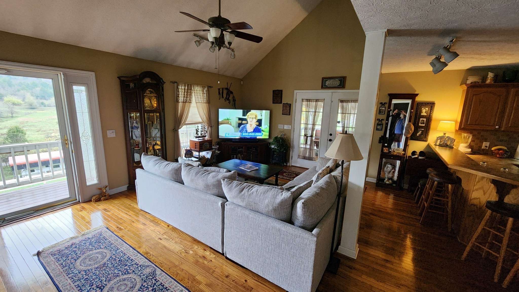 Nestled on 5.1 picturesque acres, this charming home offers breathtaking, Gatlinburg-like views & an abundance of wildlife right at your doorstep. Imagine soaking in the hot tub on the wraparound porch, surrounded by nature's beauty, or unwinding by the fireplace on a cozy, rainy evening, listening to the soothing pitter-patter of raindrops on the tin roof. The ultimate retreat for relaxation and entertainment, this home features a perfect "man cave" with a 24x30 detached garage equipped with electric, air, & water. Need more space? You'll love the multiple outbuildings, all with electric & water, providing endless possibilities for storage, hobbies, or workshops. Inside, you'll appreciate the spacious layout, including an extra-large laundry room & ample storage throughout. Recent updates include a new HVAC unit & a four-year-old metal roof, ensuring peace of mind for years to come. With plenty of parking, including a two-car detached garage & a two-car covered carport, convenience & functionality are key. This motivated seller is ready to review all offers, so don't miss your chance to own this one-of-a-kind property! A must-see for anyone seeking a peaceful, private setting with modern amenities & endless potential. If you're a veteran, this could be your opportunity to take advantage of Assumable Va Loan, potentially saving you time & money!